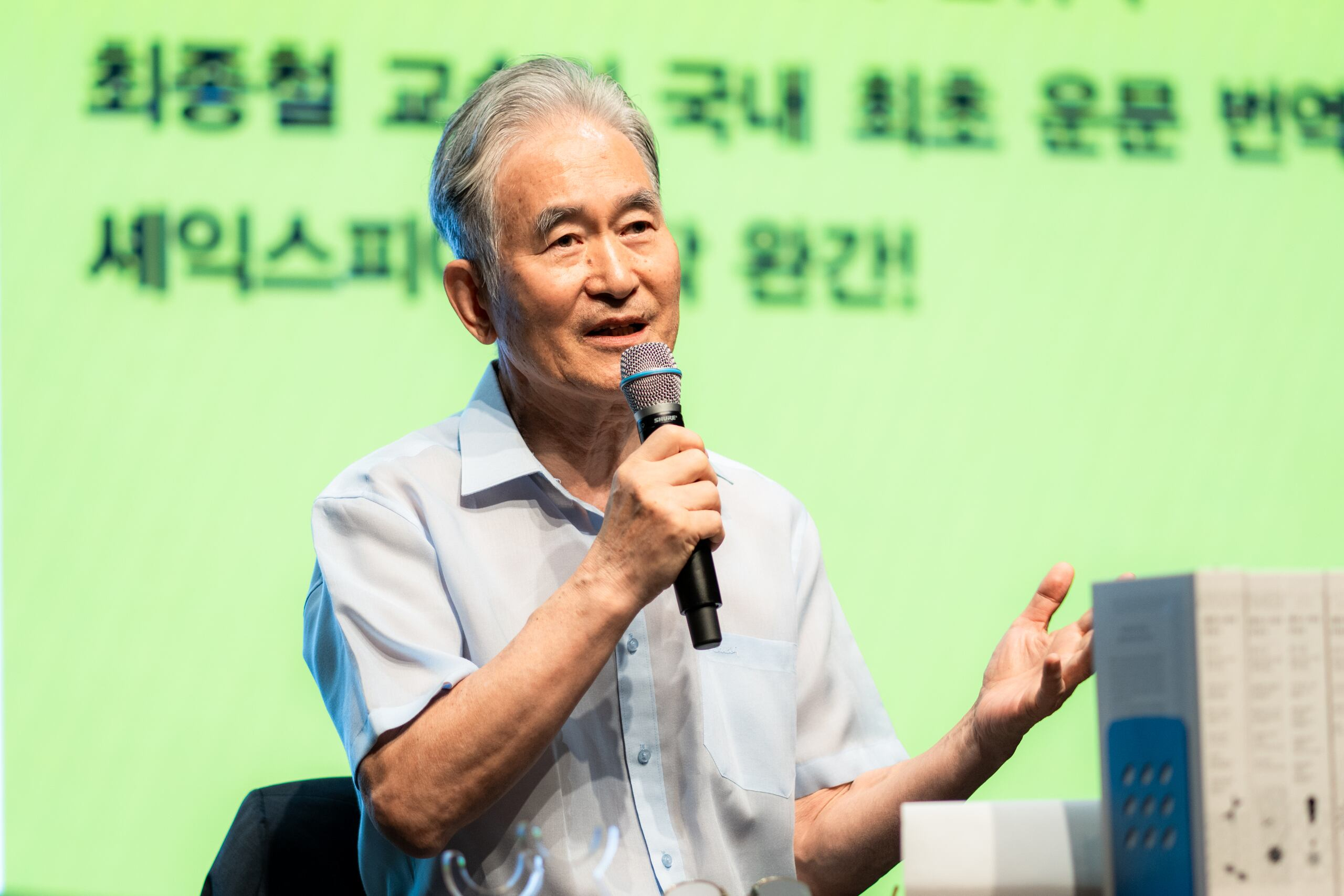 30여 년에 걸쳐 영국 대문호 셰익스피어(1564~1616)의 작품 전부를 우리말로 번역한 최종철(75) 연세대 영문과 명예교수가 희곡 ‘로미오와 줄리엣’의 발코니 장면 대사를 읊었다.