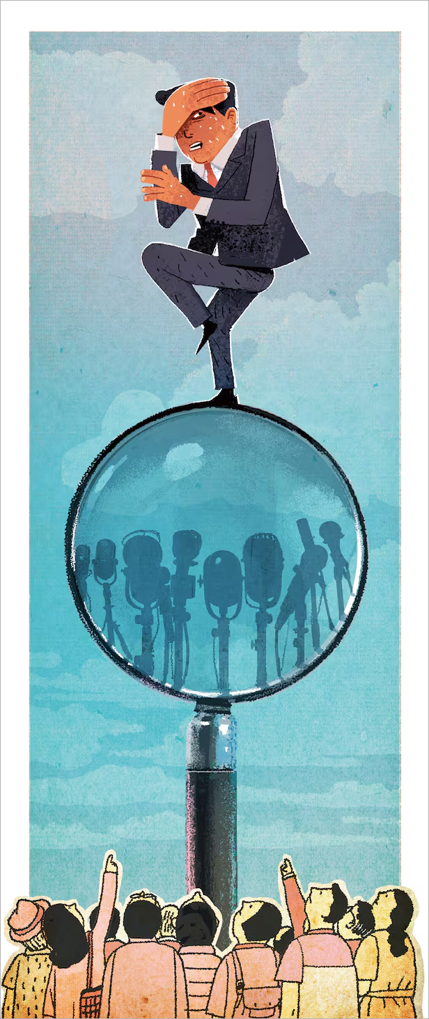 대형 스크린에 커플을 노출시킨 카메라는 그 둘의 사적 장면을 공적 텍스트로 변환해 여론을 조성했다는 점에서 언론과 기능이 유사하다. 부끄러운 모습이 만천하에 드러나자 그들은 고개를 숙이거나 숨고, 회사에서는 물러났다. 만약 그들이 고개를 빳빳이 들고 자신들의 행위는 불륜이 아니라거나 관행이라는 등의 궤변을 늘어놓으며 아무 일도 없다는 듯 출근한다면 어떨까. 심지어 어떤 조직적 세력이 그들의 불륜을 감싸고 변호하며 오히려 비난하는 사람들을 역공한다면 잘못이 뒤집히기라도 할까. 그런 그들이 영향력 있는 사회 지도층이라면 그런 장면을 대형 스크린으로 매일 바라보는 대중의 정신 건강은 온전할까.